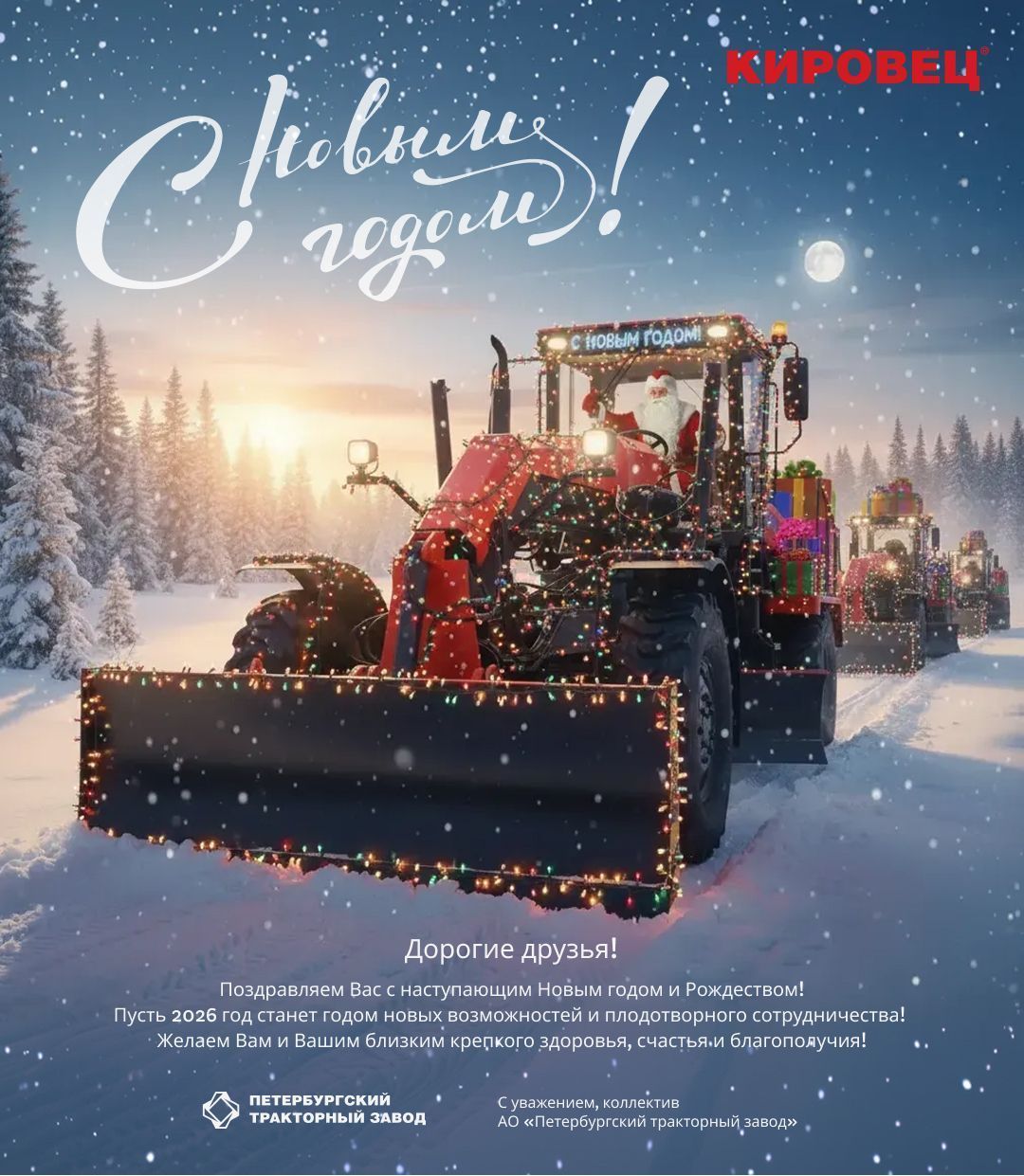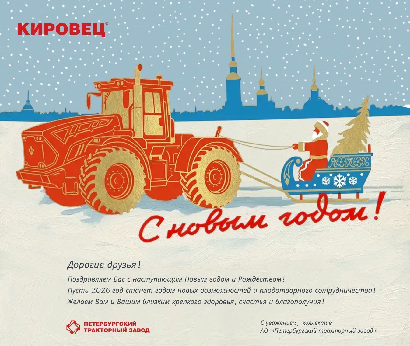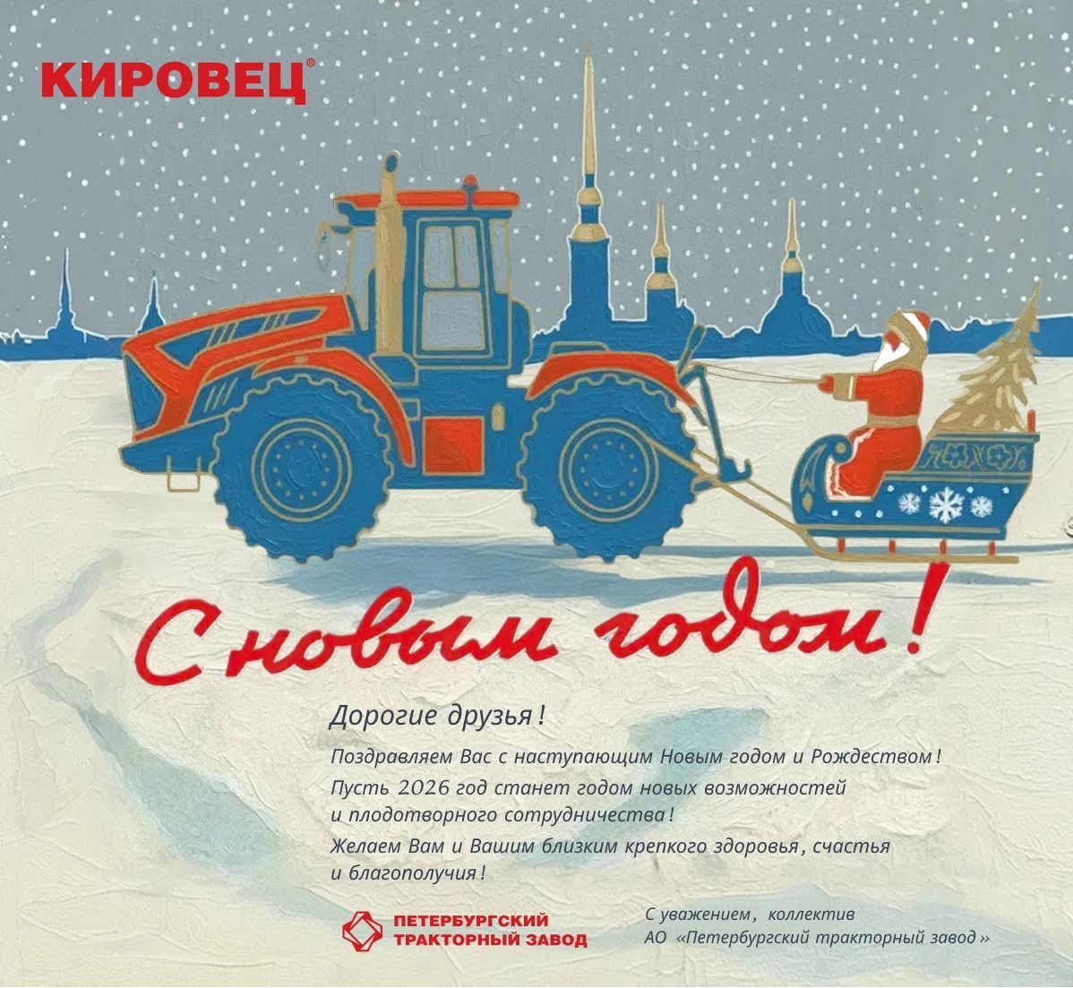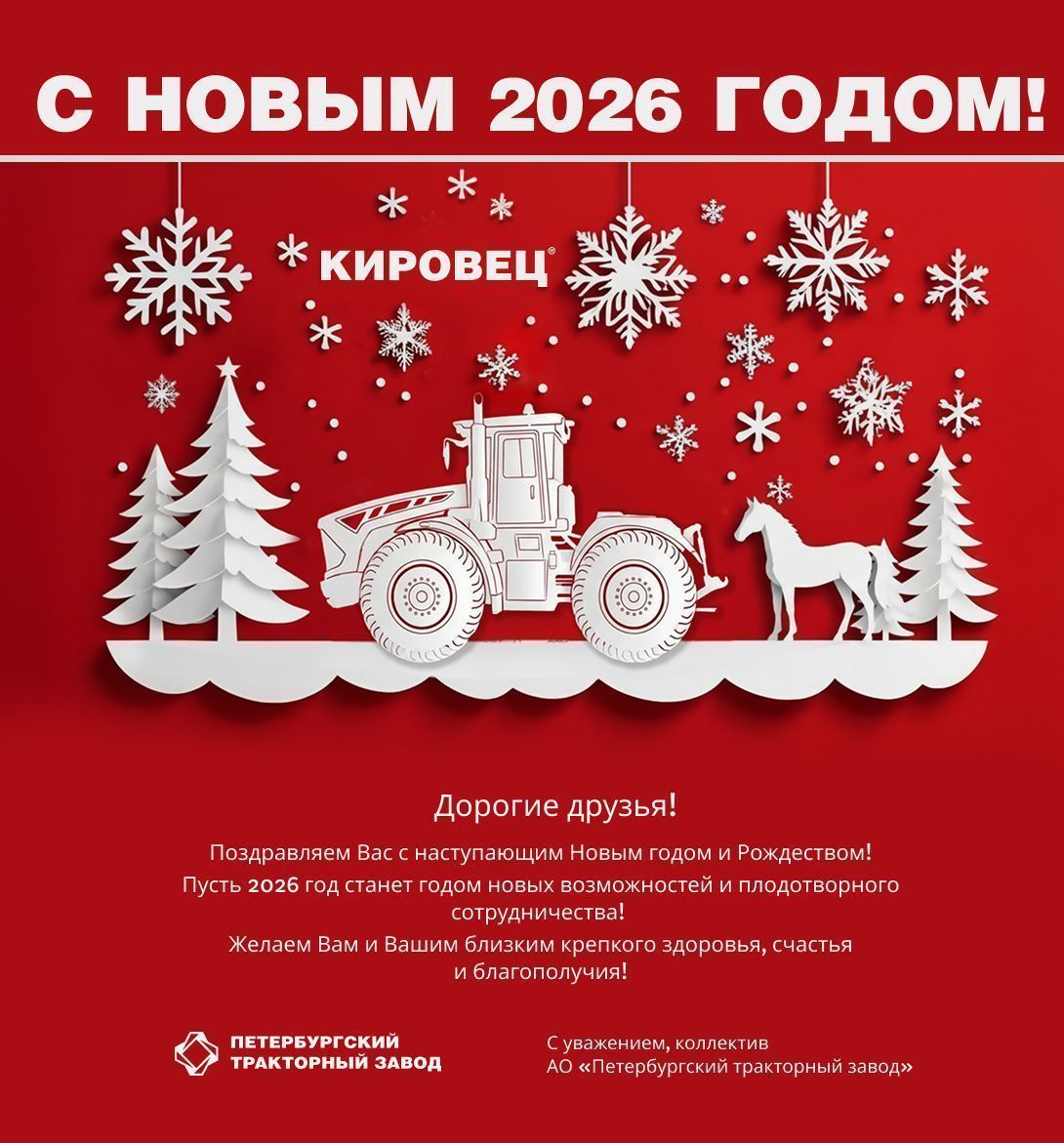 Коллектив Петербургского тракторного завода поздравляет Вас с наступающим Новым годом!